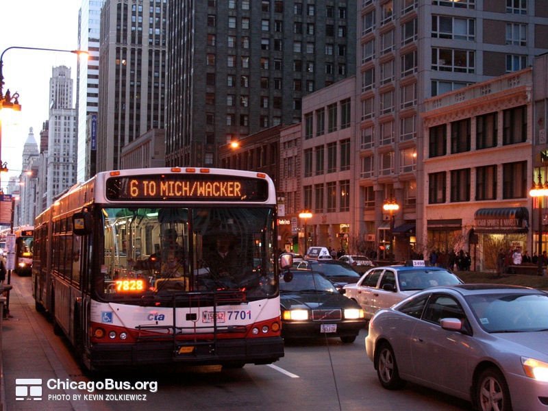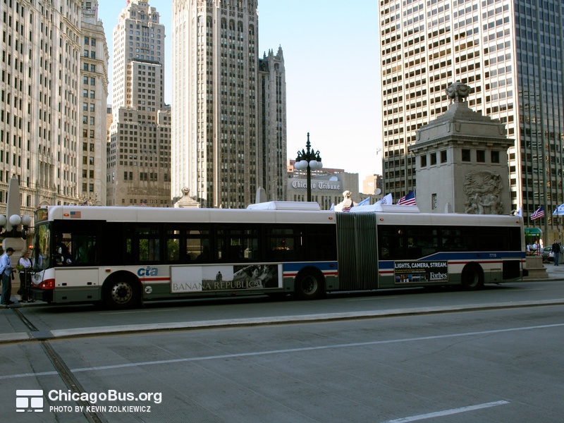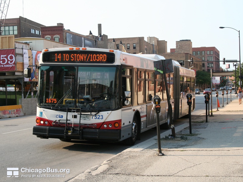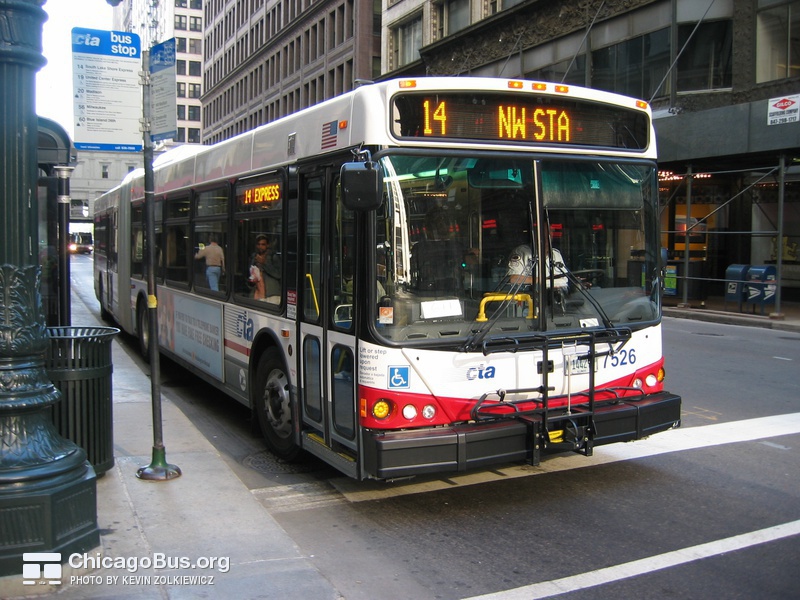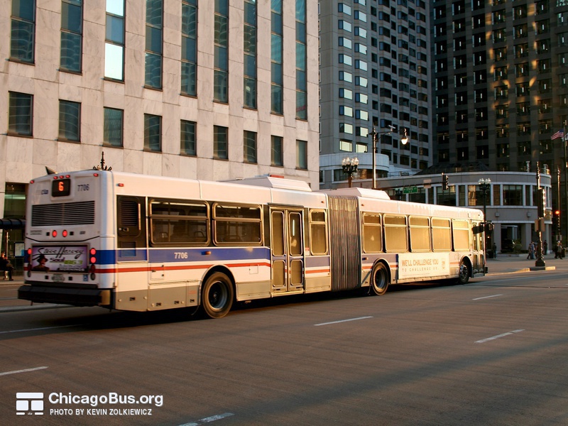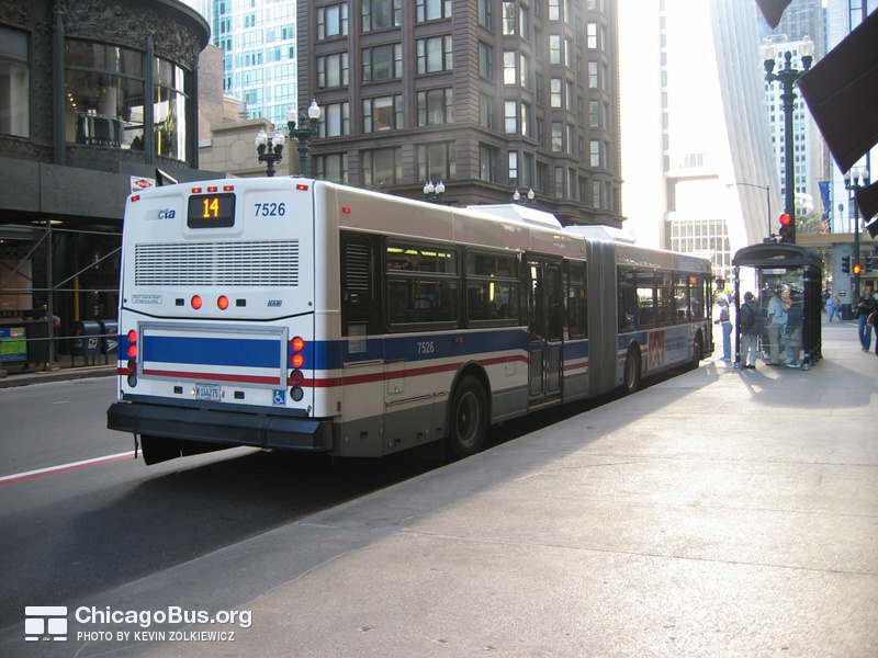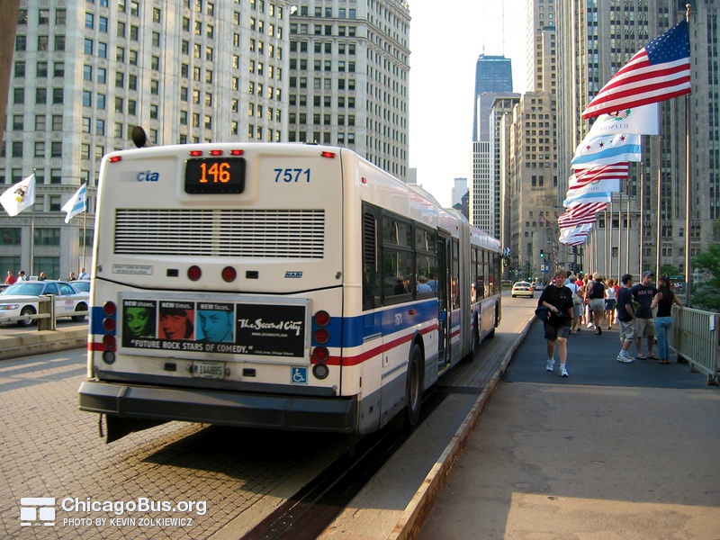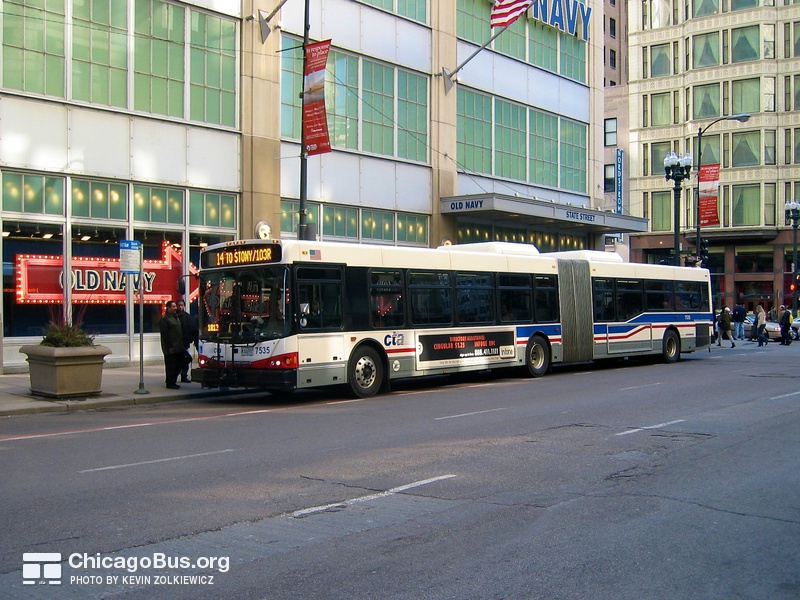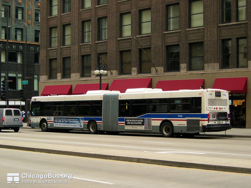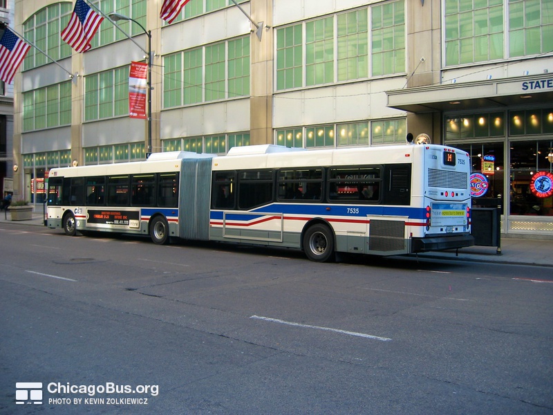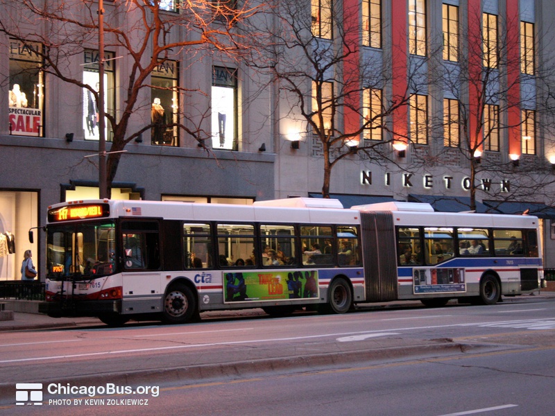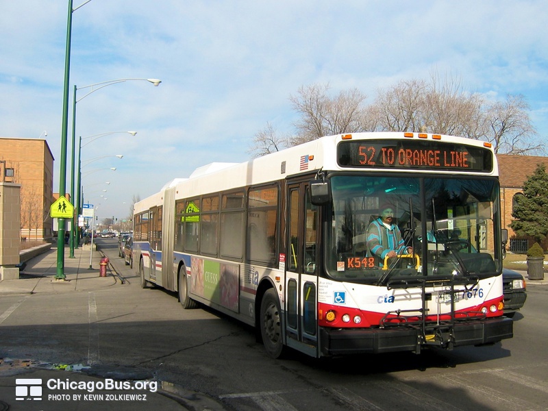 In 2003, the CTA began receiving an order of 226 new articulated buses from North American Bus Industries (NABI). The $102.1 million contract was the CTA’s first order of new articulated vehicles since 1983. They replaced the rapidly deteriorating 7300-series MAN articulated buses, which were purchased used from Seattle in 2001. The used bus purchase was meant to temporarily fill the need for articulated buses, as the 7100-series MAN articulated buses delivered to the CTA in 1983 were no longer suitable for operation, yet could not be immediately replaced with new buses.